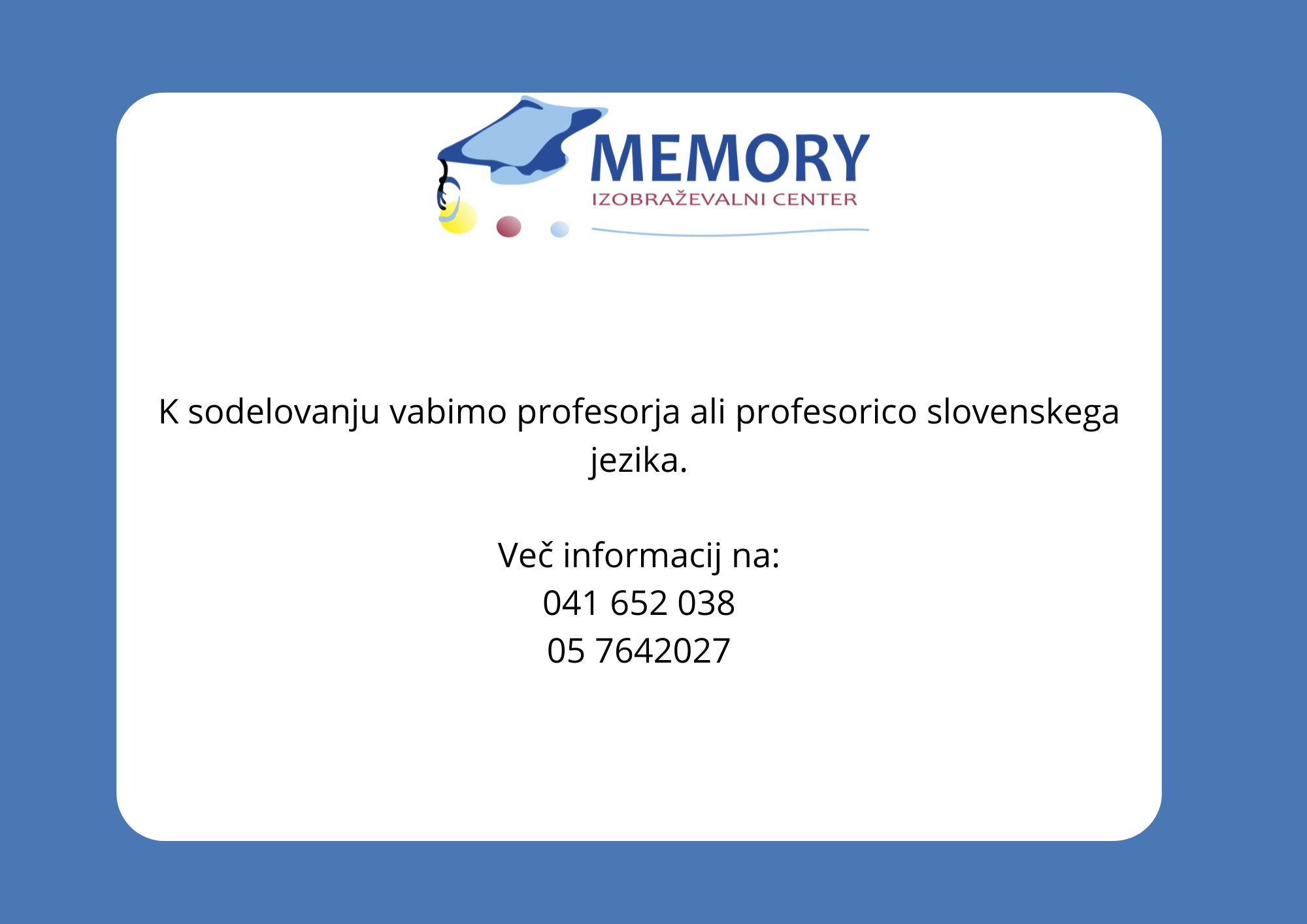 Vabilo k sodelovanju: profesor ali profesorica slovenskega jezika